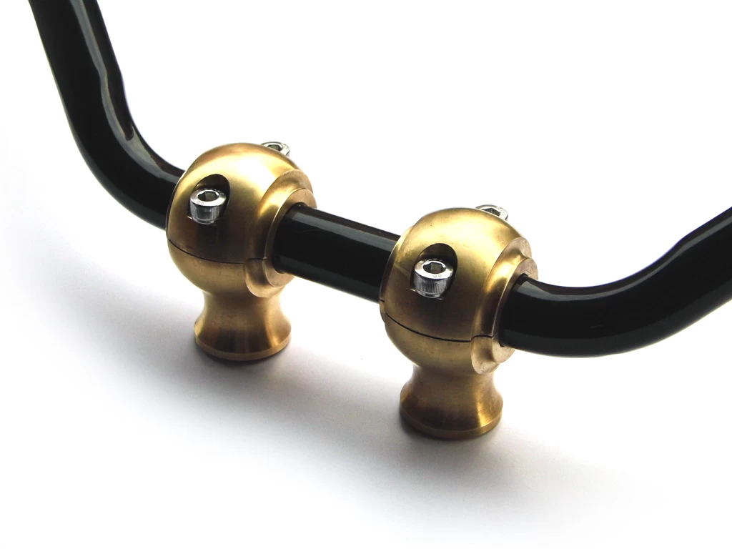 Brass CNC Retro Risers Retro for Harley Davidson. These are the real deal. Made out of 100% brass, so nice and heavy. These are made for a 1.25 Inch bar (31.7MM) handlebar and will fit many Harley Davidson models.