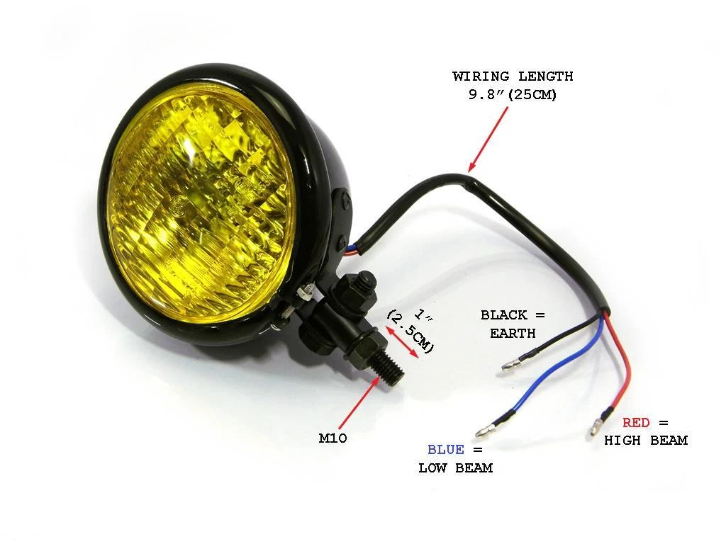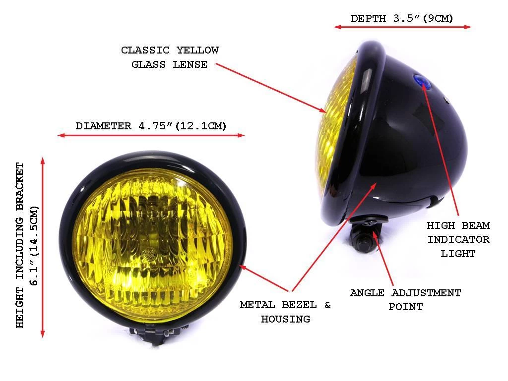 This solid “Bates” style custom headlight has a bottom-mount bracket and is very easy to mount on your motorcycle. Moreover, it will give a nice retro look to your bike!