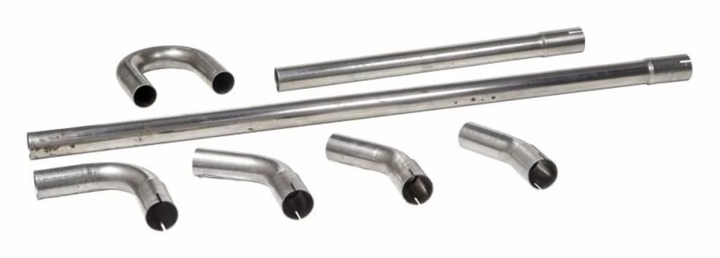 51 MM DIY exhaust pipe set to make your own exhaust. The set consists of bends and lengths that generally have to be sufficient for one system.