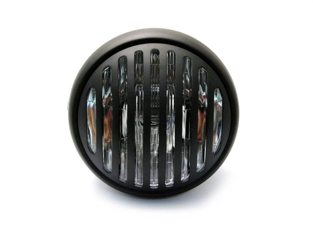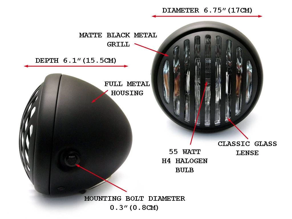 6.75″ Steampunk chopper Matte Black Headlight. Both awesome and unique, this high-end headlight is perfect to give an aggressive look to your bike! Also Ideal for your Chopper!