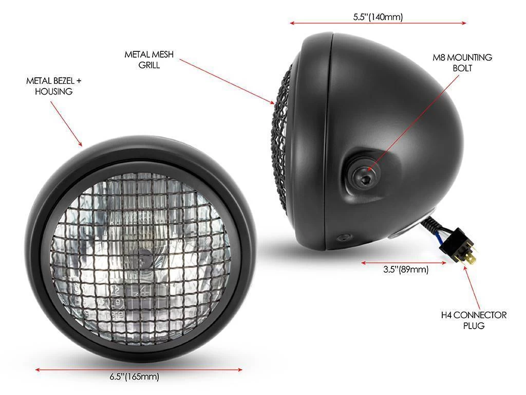6″ Mesh Headlight Scrambler Black.