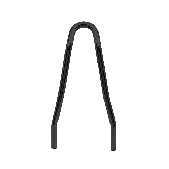 9/16 “Pointed-type Sissy Bar Black Universal (various sizes). Made of 14.28 mm thick steel. The width measure is measured at the bottom from outside to outside. Top is tilted backwards.