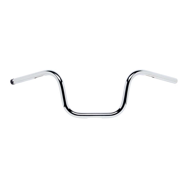 Handlebar in chrome and Satin black electroplated 4130 seamless chromoly tubing with a 3mm wall thickness and CNC machined slots with an internally tapered bar for cutting-edge throttle module integration. – A 1-inch handlebar. 30.5″ (77.5cm) wide x 8″ (20.3cm) rise x 4.75″ (12.1cm) centre width x 6.5″ (16.5cm) pullback. Note: Compatible with mechanical and electronic throttles (Throttle By Wire). When using e-throttle, the tube end comes with a special (removable) plug to compensate for the shorter throttle (right) side bar length. Note: For the exact type of approval and validity on bike model and years on the test report, contact your local MCS dealer or the MCS sales department.
