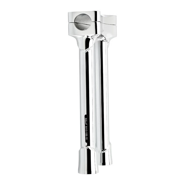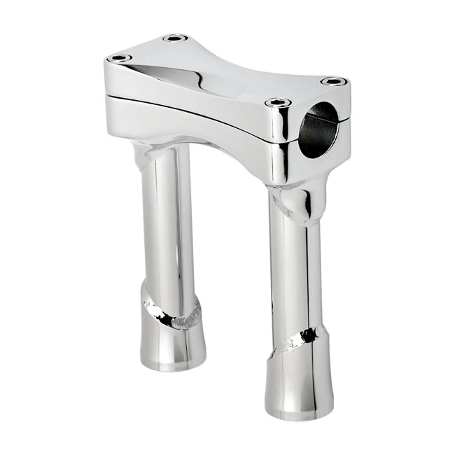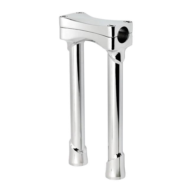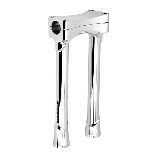 - Riser tubes are made of 3mm thick, seamless, TIG-welded 4130 chromoly tubing with 1/2-13 threaded mounting holes that accept standard riser bolts. 3-1/2″ (89mm) spacing to suit most H-D top triple trees.