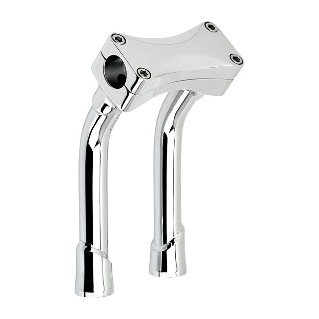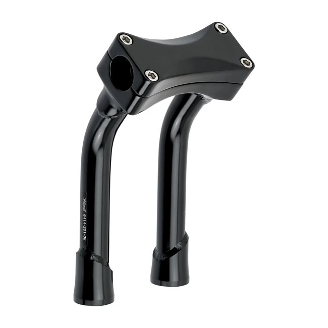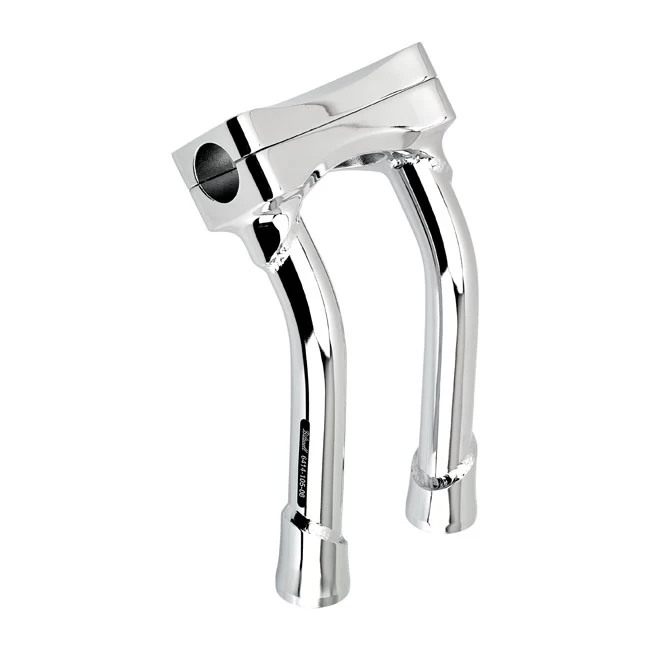 It has electroplated finishes in black or chrome and comes with approval. It is suitable for 1-1/8 (28.6mm) handlebars. It comes with 2″(51mm) Pullback, investment-cast steel upper and threaded lower construction. Riser tubes are made of 3mm thick, seamless, TIG-welded 4130 chromoly tubing with 1/2-13 threaded mounting holes that accept standard riser bolts. 3-1/2″ (89mm) spacing to suit most H-D top triple trees. The stock H-D speedo and tachometer brackets fit the top clamp bolt pattern. The specific type of approval and validity for the bike model and years listed on the test report should be confirmed with your neighbourhood MCS dealer or the MCS sales department.