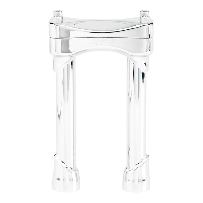 - Riser tubes are made of 3mm thick, seamless, TIG-welded 4130 chromoly tubing with 1/2-13 threaded mounting holes that accept standard riser bolts. 3-1/2″ (89mm) spacing to suit most H-D top triple trees.