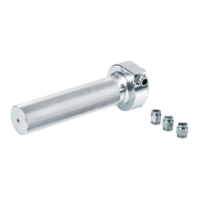 – Knurled alloy throttle for aftermarket rubber grips