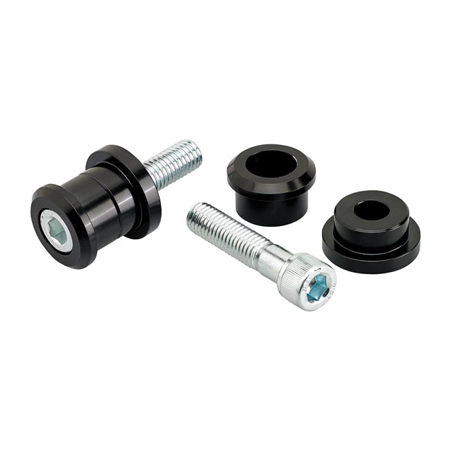 Black, CNC machined aluminium solid mount handlebar damper adapter set for replacing stock rubber handlebar dampers. A much more rigid and confident riding experience is provided, especially with taller bars. 1/2-13 threaded grade-8 allenhead handlebar mount bolts are included.