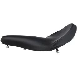 Construction: 1/8-inch thick (3mm) stamped steel pan with welded carriage bolts on nose and tail for spring and hinge mounting. One inch thick moulded polyurethane foam padding with a hand-stitched heavy-duty vinyl cover. Four carriage bolts are welded onto the bottom of the pan to facilitate spring and seat hinge mounting. Your frame may require modifications to nose hinge and spring bungs for proper fitment.