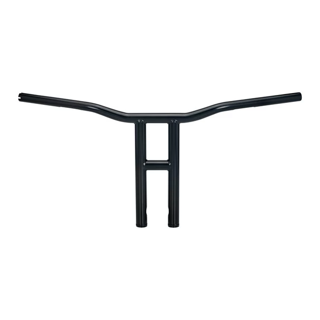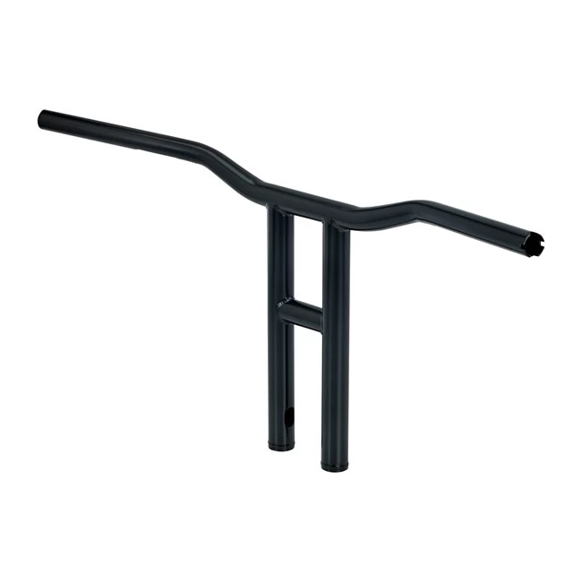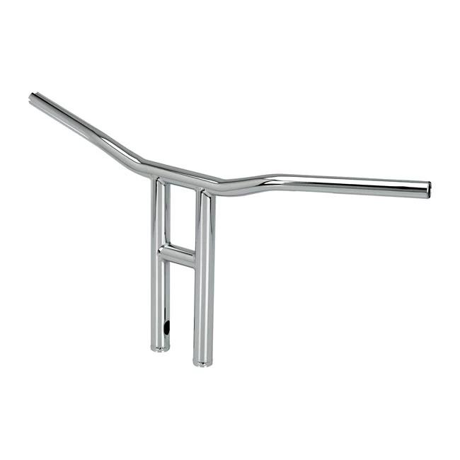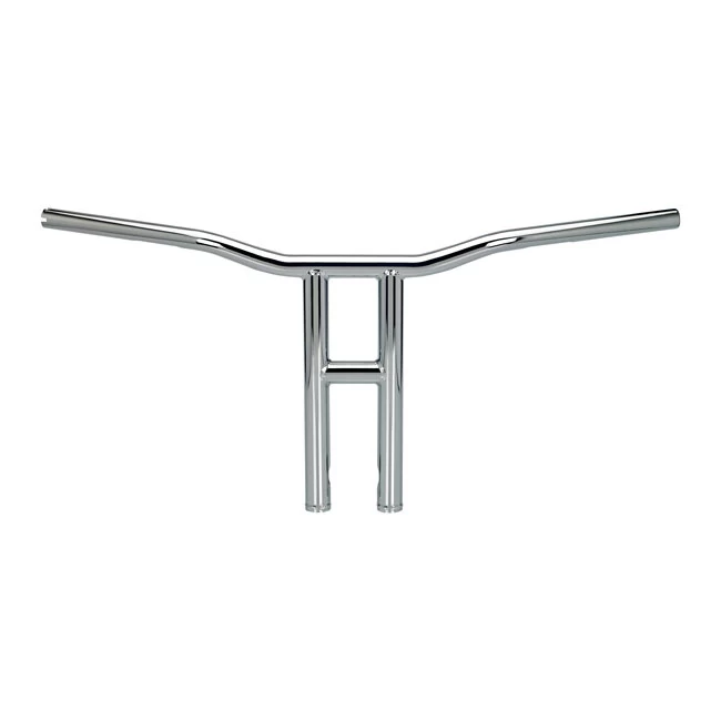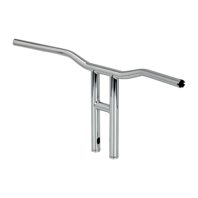 Like the standard Tyson but much bigger, 3mm thick 4130 Chromoly that is seamless and has CNC-machined wiring holes and slots. 31″ broad bars with a 2.5″ pullback are used. Bars are 31″ wide with 2.75″ pullback. In the middle bars are 1″ at the grips tapering to 1-1/8″ diameter at the TIG welded, 1-1/4″ uprights. It takes 1/2-13 threaded mounting bolts and center width is 3.5″