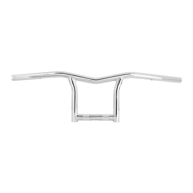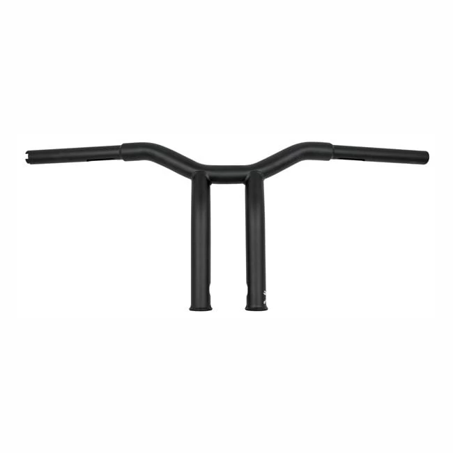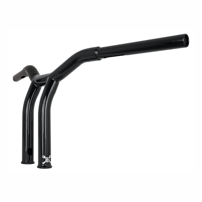 Manufactured from 1″ (25.4mm) steel tubing that is stepped down to 1″ for the handlebar controls. Crowned for use with electronic throttle applications but can be used for mechanical throttle as well. Laser cut, welded, deburred, and slotted for easy internal wiring. Narrow enough to lane filter, fat enough to take it all and more. With a black powder coated finish, the best if bling ain’t you thing. Dimensions: 10″ (25cm) rise x 29″ (73cm) wide x 5″ (12.7cm) pull back x 3.5″ (8.9cm) riser width.