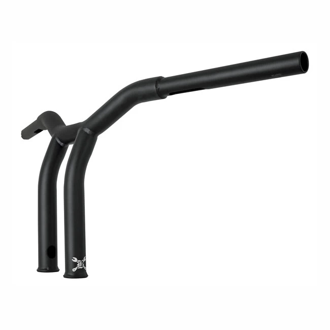 Manufactured from 1″ (25.4mm) steel tubing that is stepped down to 1″ for the handlebar controls. Crowned for use with electronic throttle applications but can be used for mechanical throttle as well. Laser cut, welded, deburred, and slotted for easy internal wiring. Narrow enough to lane filter, fat enough to take it all and more. With a black powder coated finish, the best if bling ain’t you thing. Dimensions: 10″ (25cm) rise x 29″ (73cm) wide x 5″ (12.7cm) pull back x 3.5″ (8.9cm) riser width.