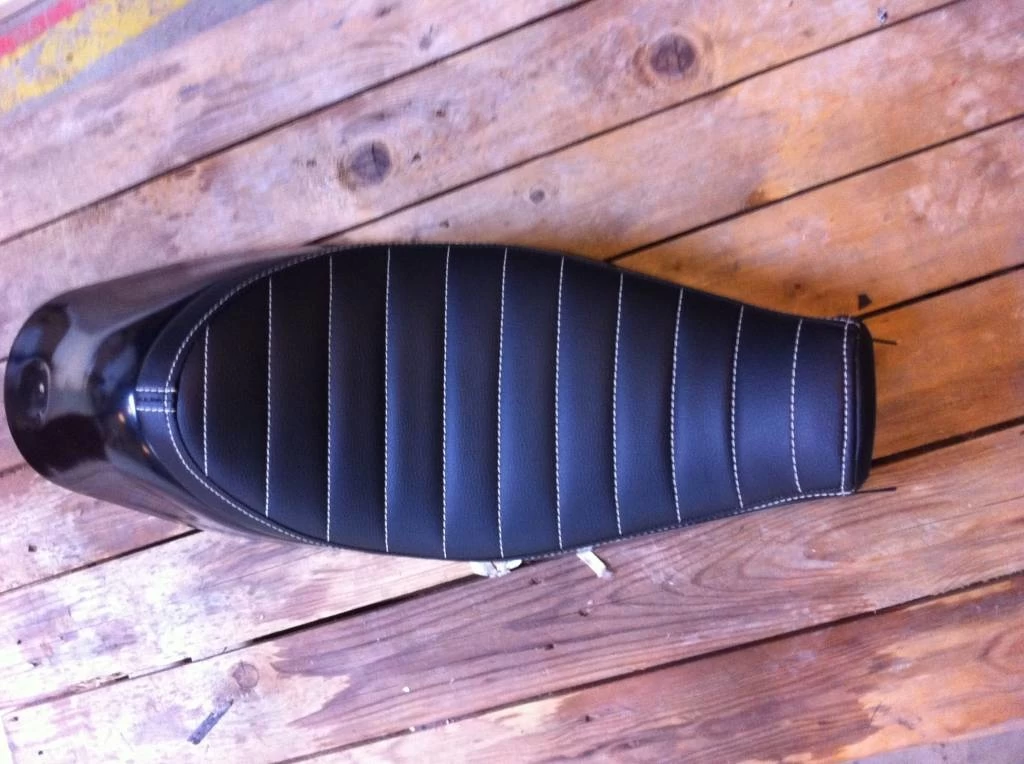 Sportster Tracker Seat Tuck ‘N Roll Black 49. Very cool and sturdy Street/Dirt Tracker seat.