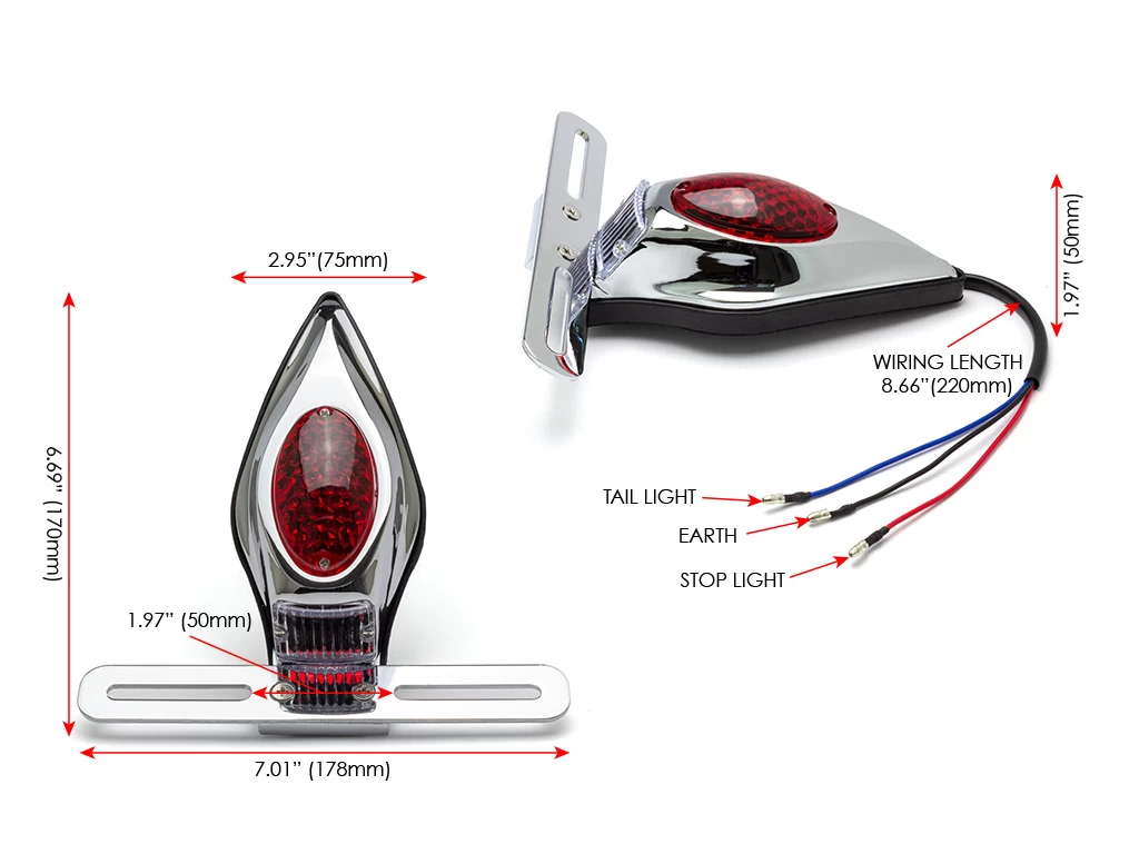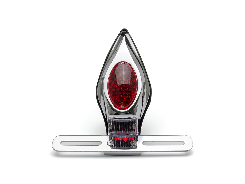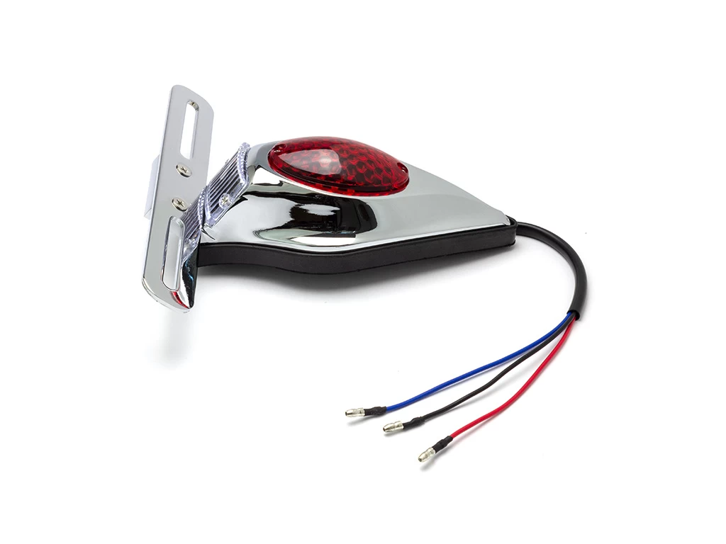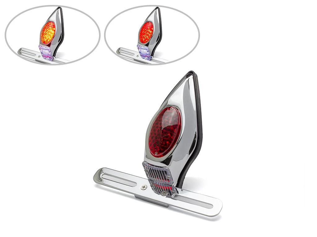 High quality classic rear light with a full cast alloy housing and modern LED internals. Mounts to any flat surface using 2 x mounting bolts. Its not just a tail light, it is also a stop and license plate light, designed like a tombstone to give your bike something special.