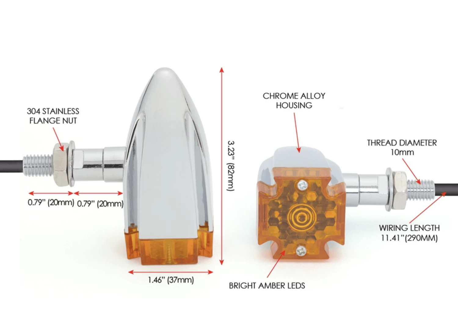 Available with smoked lens and clear lens. These good quality turn signals are equipped with a solid classically shaped housing with modern LED interiors.