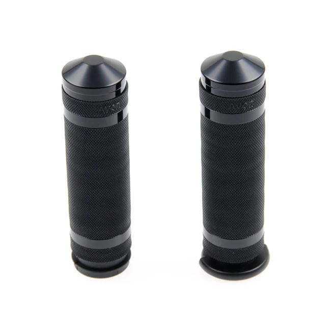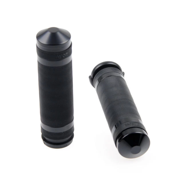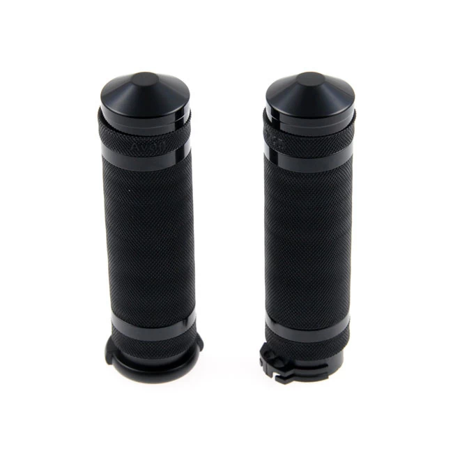 Black powder coated CNC machined knurled aluminum grip set. Designed for 1″ (25.4mm) handlebars and does not include the throttle sleeve.
