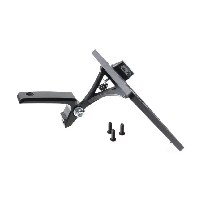 A unique slide-in frame that makes installing a license plate simple. CNC-machined steel in a glossy black powder coat with an ECE-approved LED license plate light already mounted. Extra-short mount for installation near to the bike for an integrated appearance. The holder comes with all the necessary installation gear and is connected to the swingarm’s stock mounting points using a unique bracket. TüV certified. For plates measuring 180 x 200 mm (width x height).