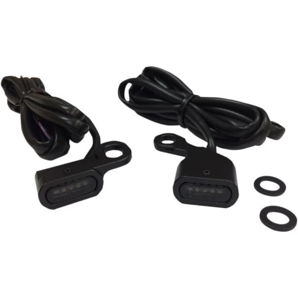 LED indicator lights by Drag Specialties. Easy to install on the stock mirror mount. Thanks to its strong aluminium housing, the product is extremely durable. It even comes with an ECE mark!