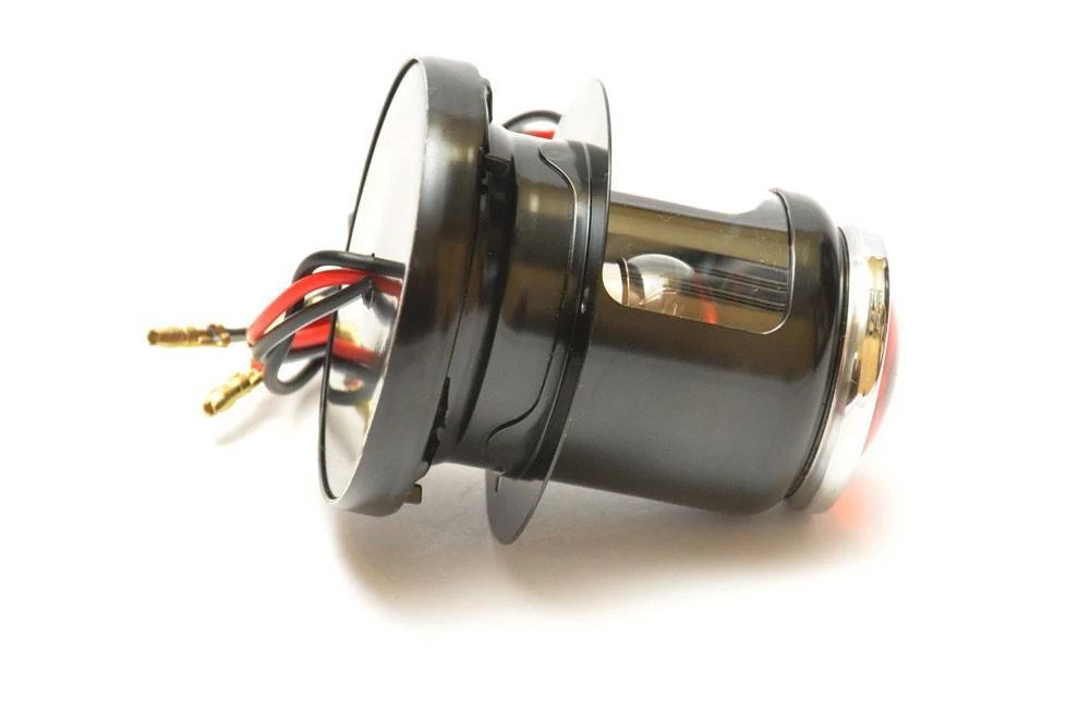 Replica of Lucas MT110 rear lamp (with stop/tail conversion). for Choppers and Custom Bikes like Harleys. Finish your Chopper with this rear light.