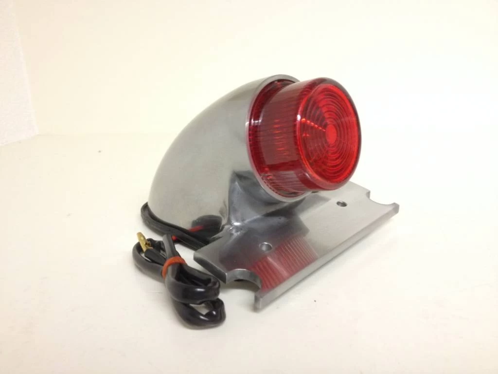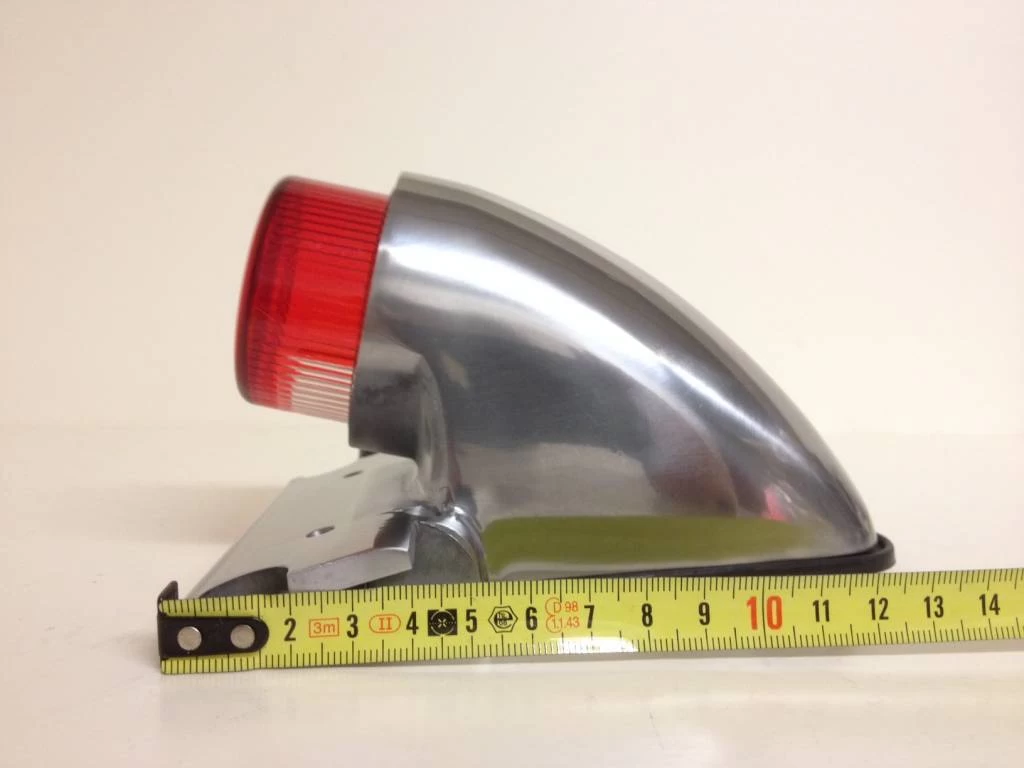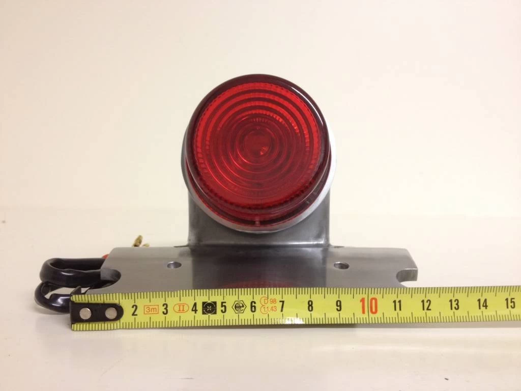 Replica polished alloy Sparto rear lamp with integral numberplate mount and projecting lens.
