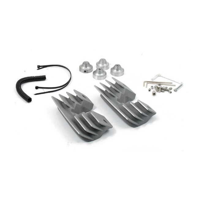 Aluminum construction. Slip-fit installation around the spark plug. These head bolt covers are designed to bridge the large and empty gap between the cooling fins on the right side of the engine. Cooling fins will match the engine’s cooling fins for a more uniform appearance and a full-finned engine look.