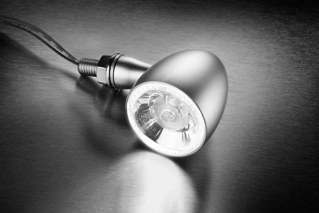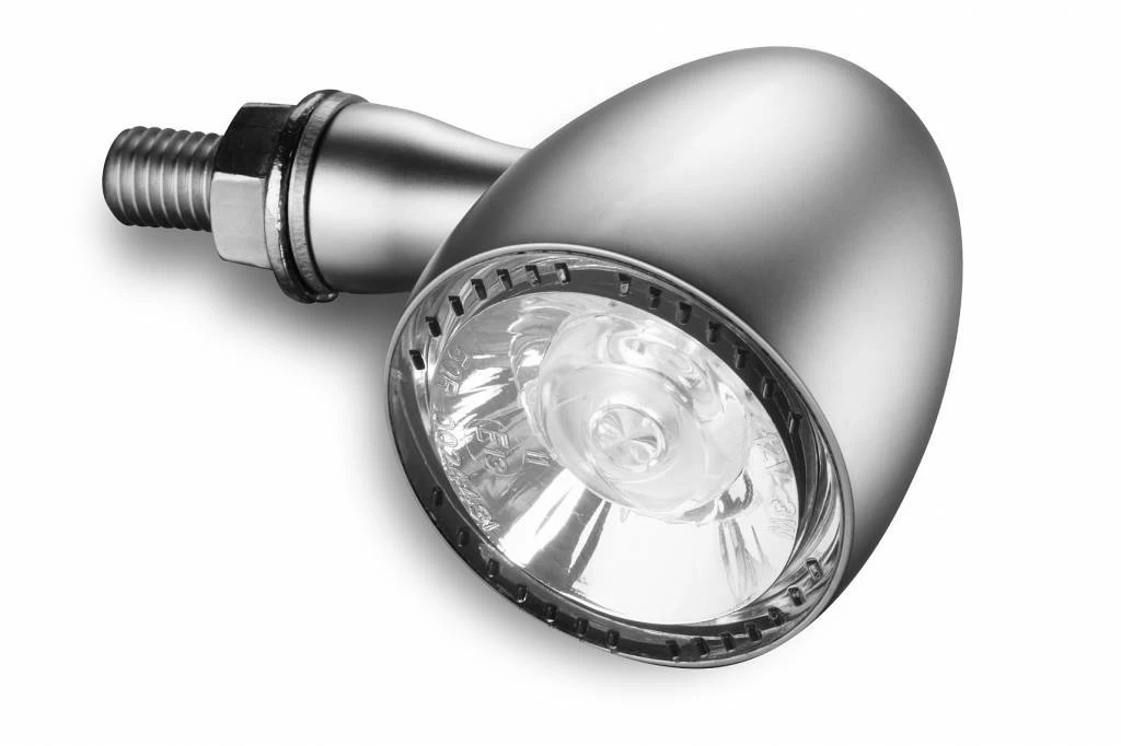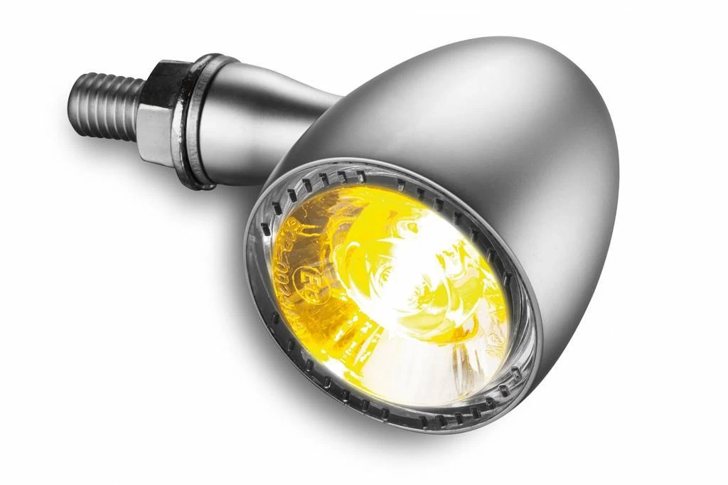 Kellermann only had one thing in mind when creating the Bullet 1000®: building an indicator with the classic Bullet look that would be equipped with modern LED technologies. This is how their new technology, Kellerman-HPT® was born. It creates a homogenous ring of light. Design quality does not stop with the product shape and the product surface but is also defined by the emitted light. The high-quality processed metal housing with a maximum diameter of 39 mm looks discreet as a piece of jewellery at the motorcycle and is available in the surface variants chrome, black as well as matt chrome. The Bullet 1000 fits every demanding design, no matter the bike. The Bullet 1000 is available in 3 variants: Extreme turn signal, turn signal with yellow position light and turn signal with brake/rear light.