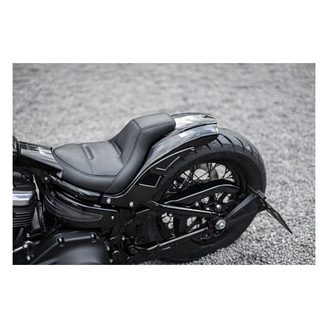 Black, synthetic leather. Used only in conjunction with Killer Custom’s ‘Bobbstr’ M8 Softail rear fender kits. Made with special HR (High Resilient) foam with a strong synthetic leather covering. With the special ‘Blocker’ stitch, this chair is a feast for the eyes. Fits: > 18-20 M8 Softail with rear fender kit Bobbstr.