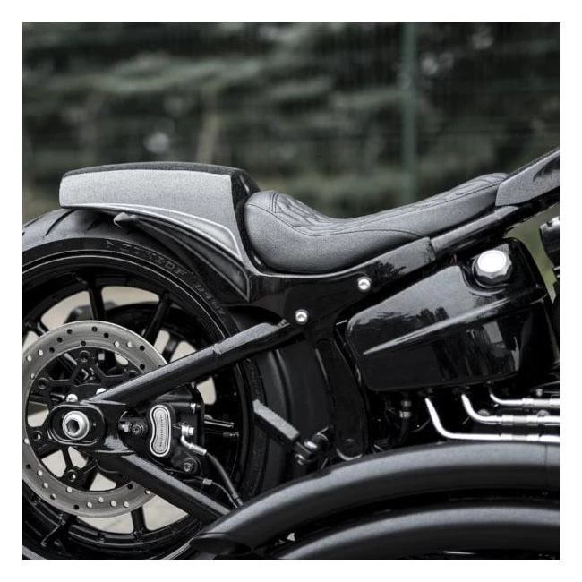 A shorter rear fender shows more tire, creating the uncompromised aggressive look. The fender is made of hand-laid black unpainted black gel coated fiberglass that is stiff, strong and straight. Includes seat tunnel/extension and mounting hardware. The fender comes with a seat pan, but the solo seat with synthetic leather upholstery is sold separately. Note: Matching solo seats are required and sold separately as ‘Godzilla’ (575442) and ‘Diamond’ (587863).