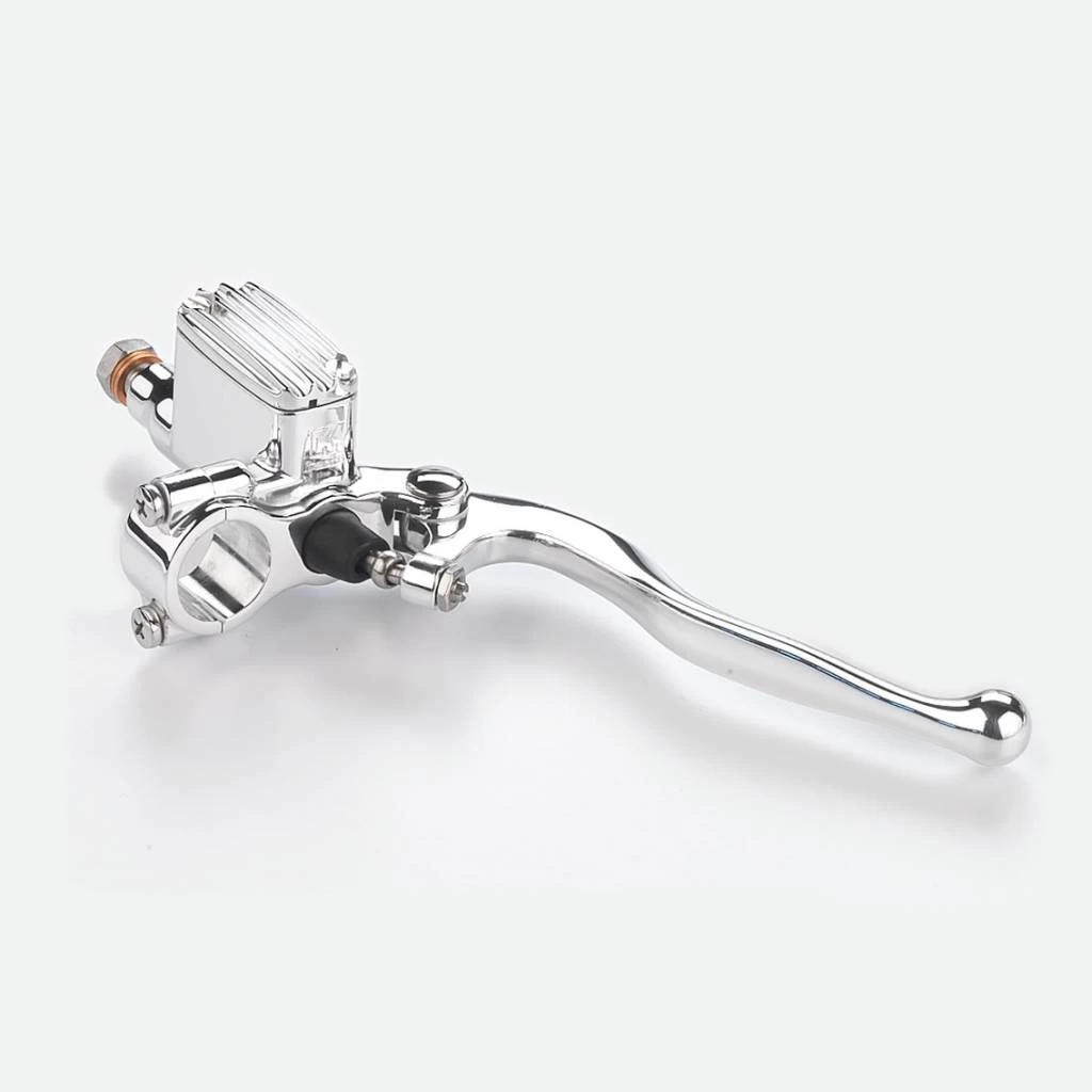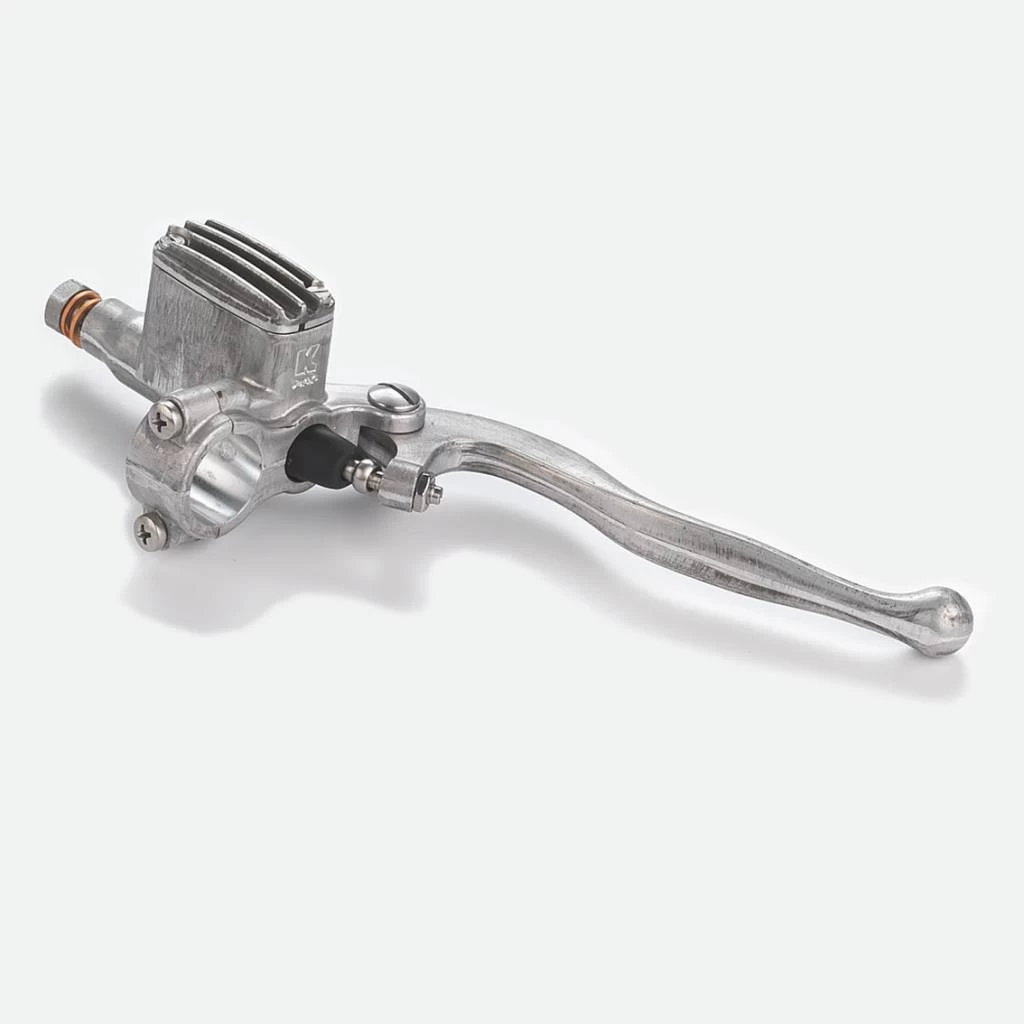 Made from forged aluminium body, The compact size with finned cover and the smooth lever will give a very retro-style look for all custom projects. It fits all 1″ handlebars, available in 4 different finishes: polish satin raw and black. It’s available with 12mm and 14 mm bore size, perfectly matching our DELUXE line clutch lever assemblies.