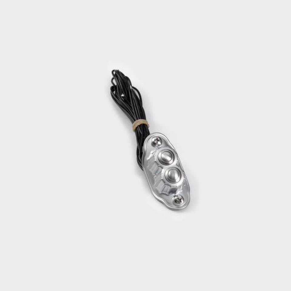 From forged brass construction, 2 buttons Deluxe switch housing comes in 5 different finishes and can be used for many applications. Designed with external fins to match perfectly Kustom Tech Deluxe and Classic line handlebar control, or all early style handlebar projects.