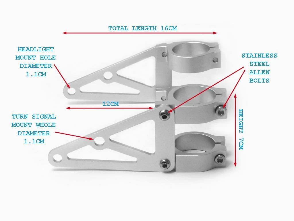These brackets are specifically designed for those of you who want to customise their front end and are on a budget, but want high quality products. They are easy to fit and are suitable for the following motorbikes: Custom bikes, Metric Cruisers, Naked Bikes, Café Racers, Streetfighters, Project Bikes, Retros, etc.