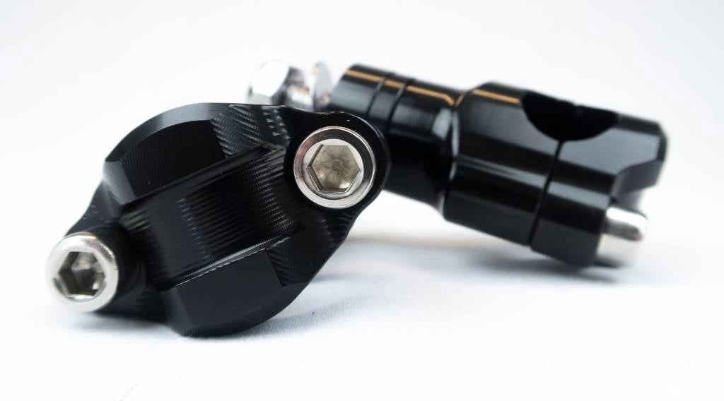 These high-quality CNC-made handlebar risers come in pairs of two and also have two different spacers included (5 mm & 10 mm). The bolt size is M12.