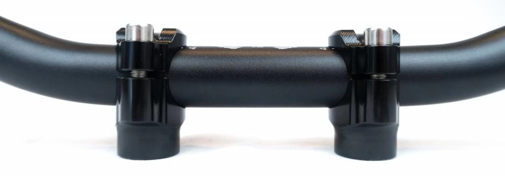 These high-quality CNC-made handlebar risers come in pairs of two and also have two different spacers included (5 mm & 10 mm). The bolt size is M12.