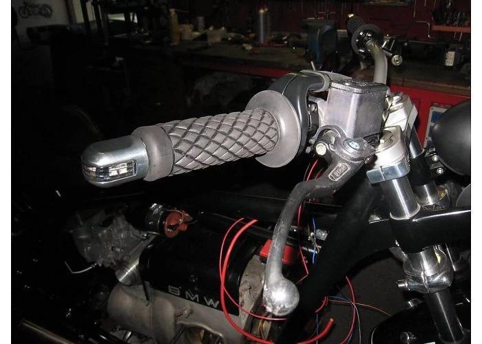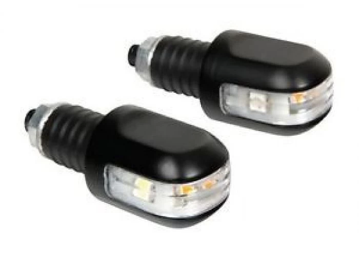 Bar End Indicators with handlebar weight. You can mount this product at the end of your motorcycle handlebar. Housing is nicely executed and the lighting is on the front, side and rear. In short, super complete!