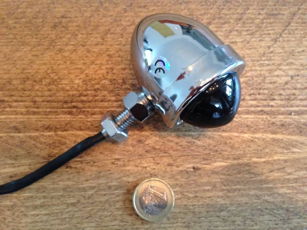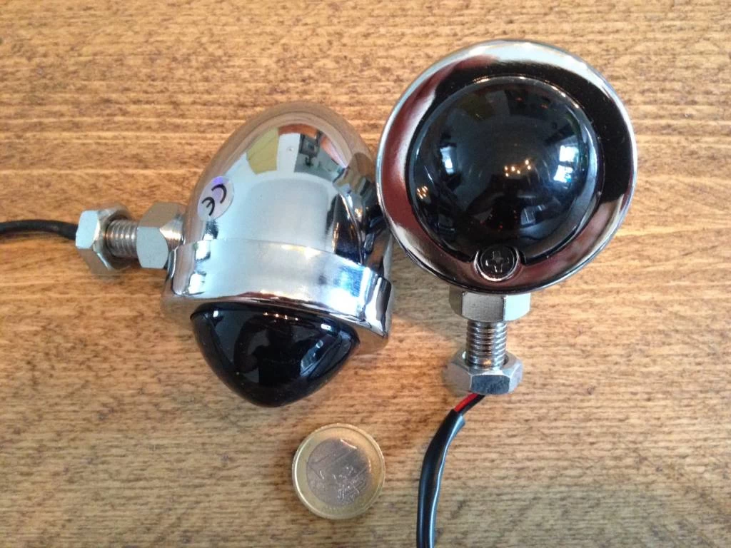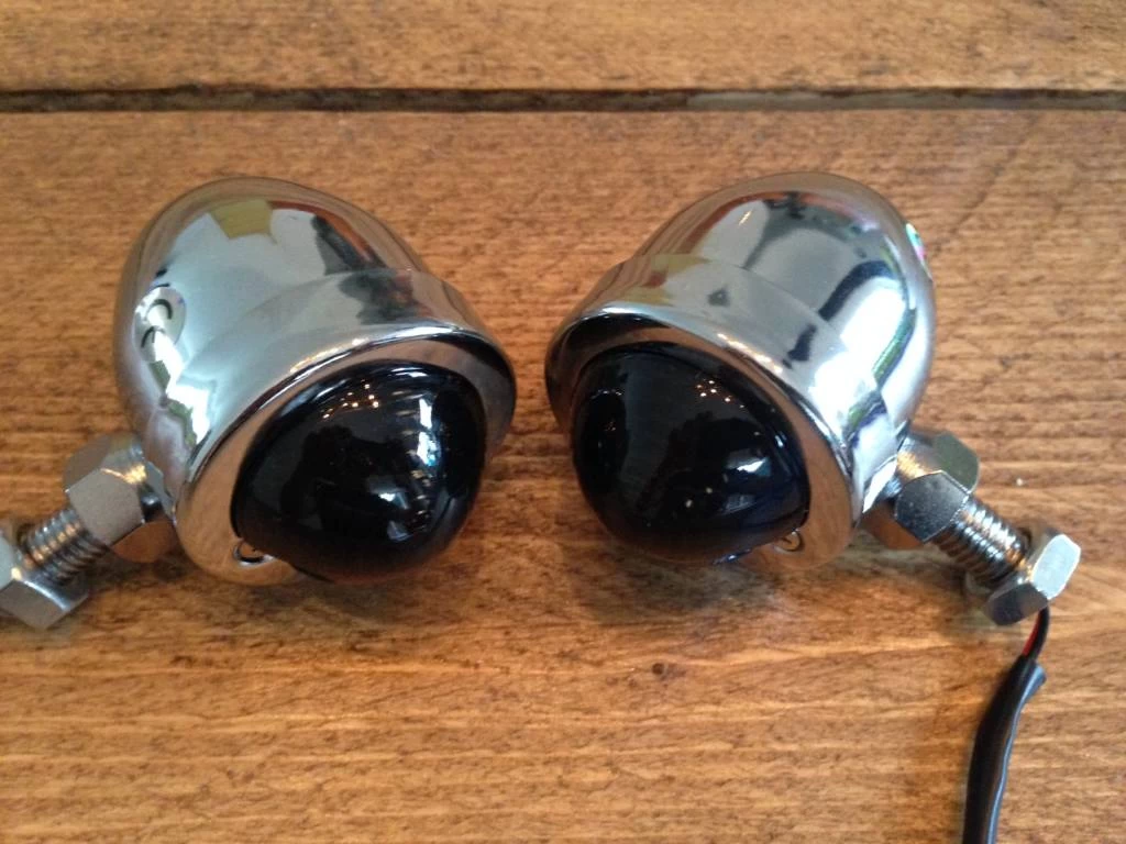 Set of Old School Chrome & Smoke N’ Bullet Turn Signals. The housing is made out of metal and you immediately feel that you are dealing with quality over here. These little friends are rockin’ your Chopper to the next level.