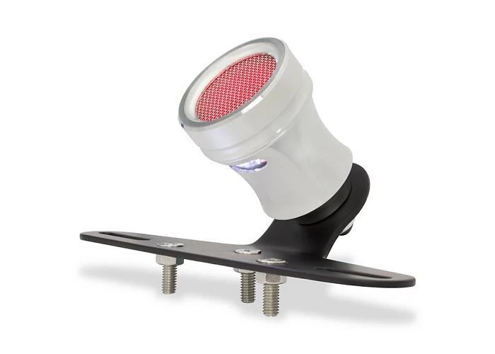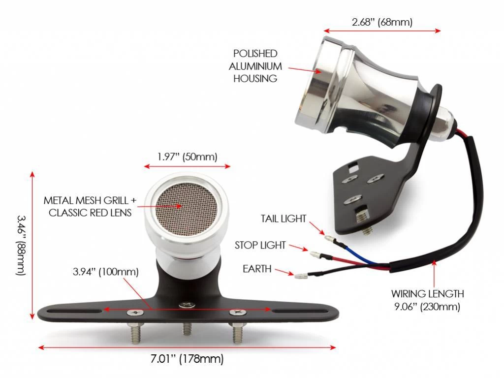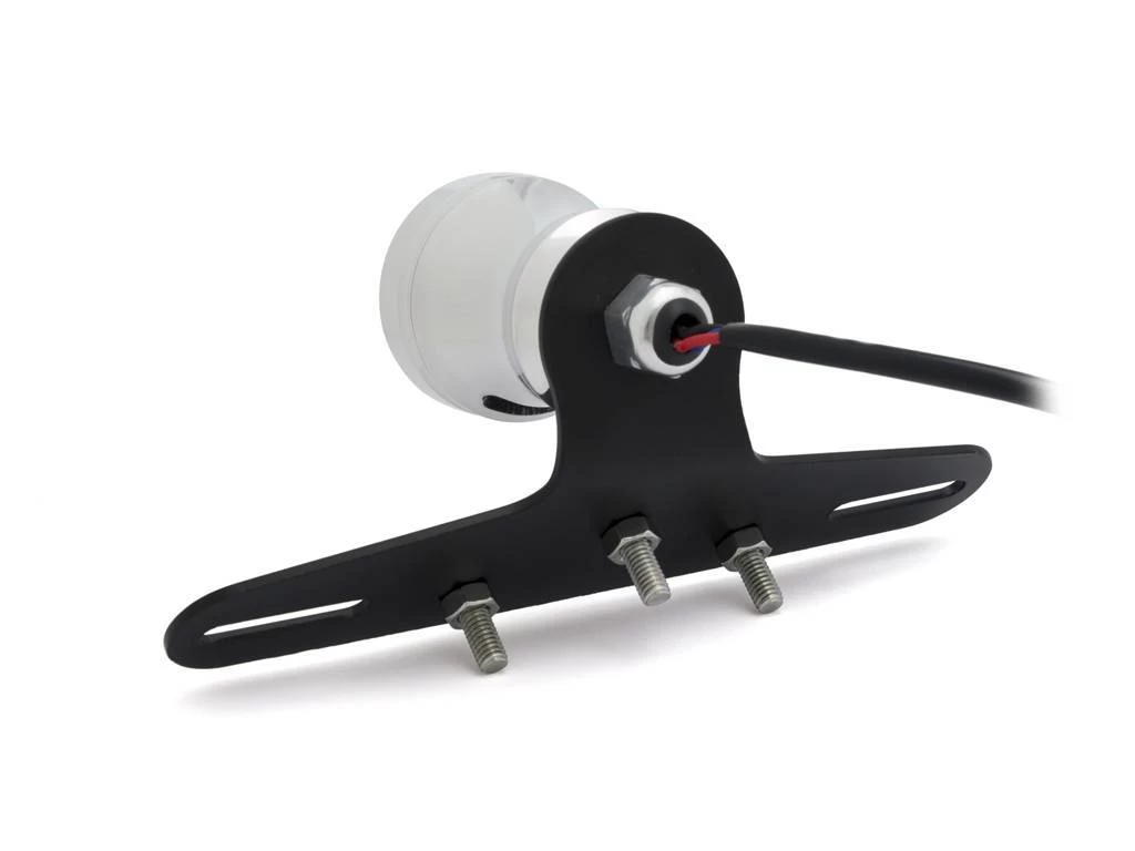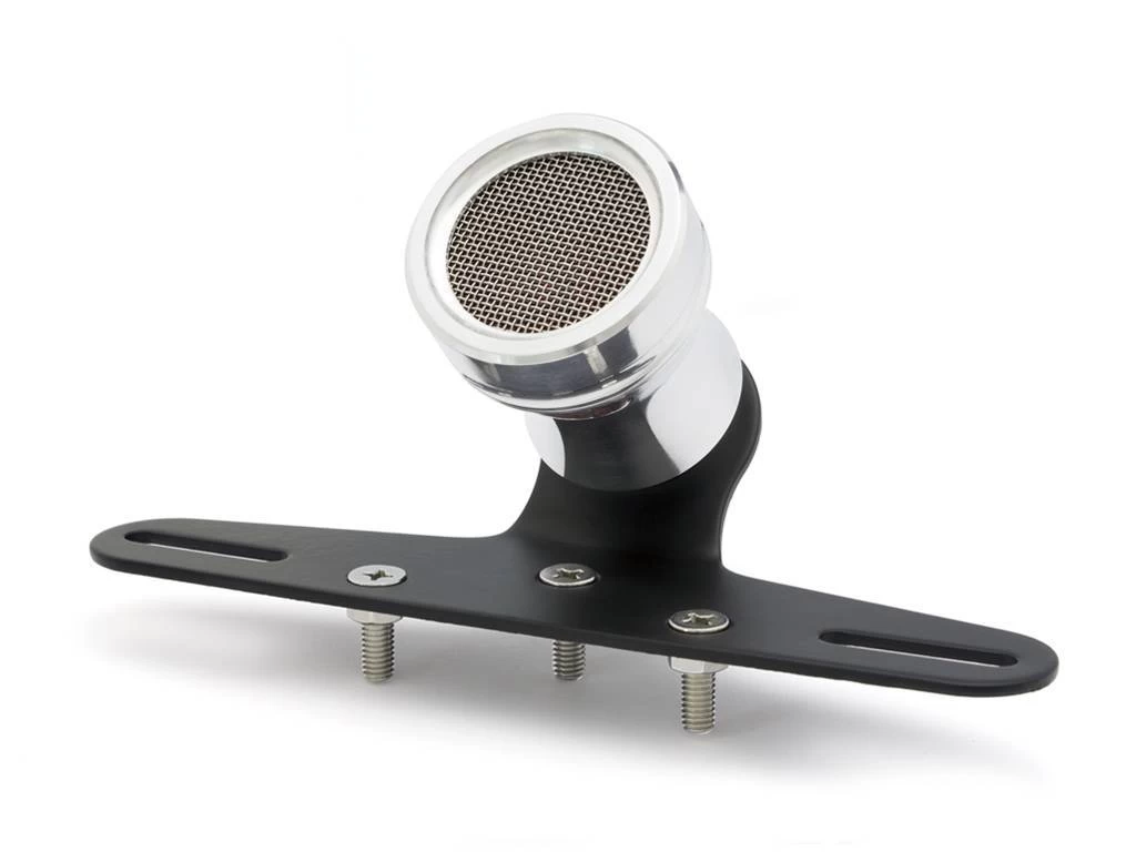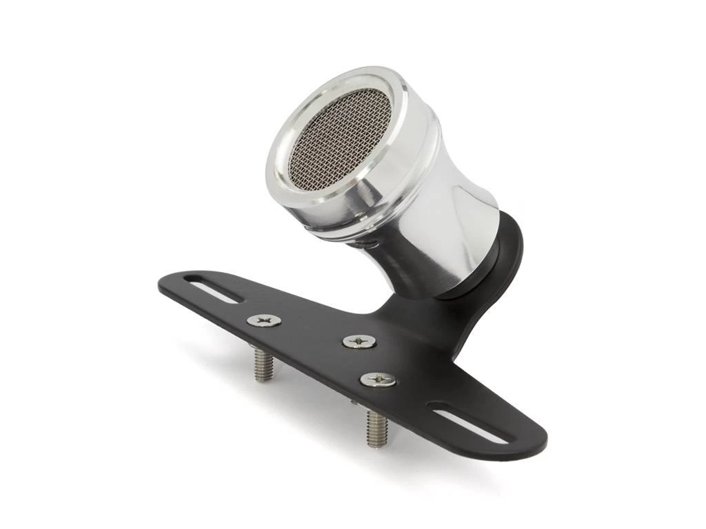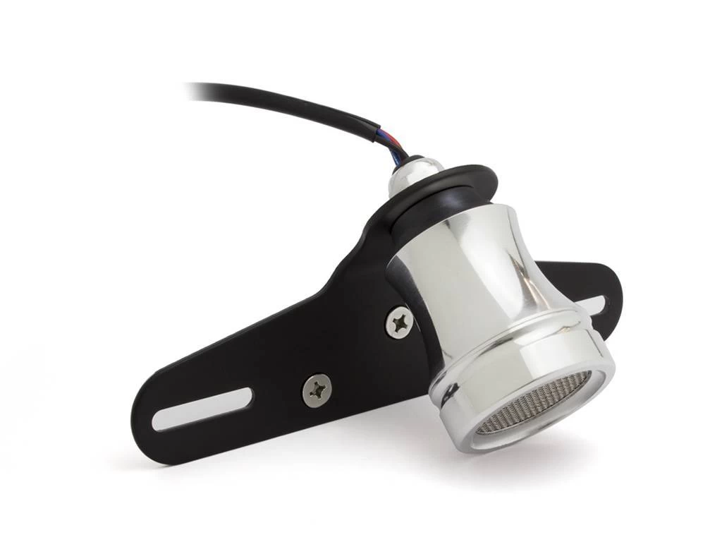 Polished Mesh Cafe taillight with license plate holder and license plate illumination. Robust mesh lamp with brake light. Nice alternative to the popular Atomic taillights.