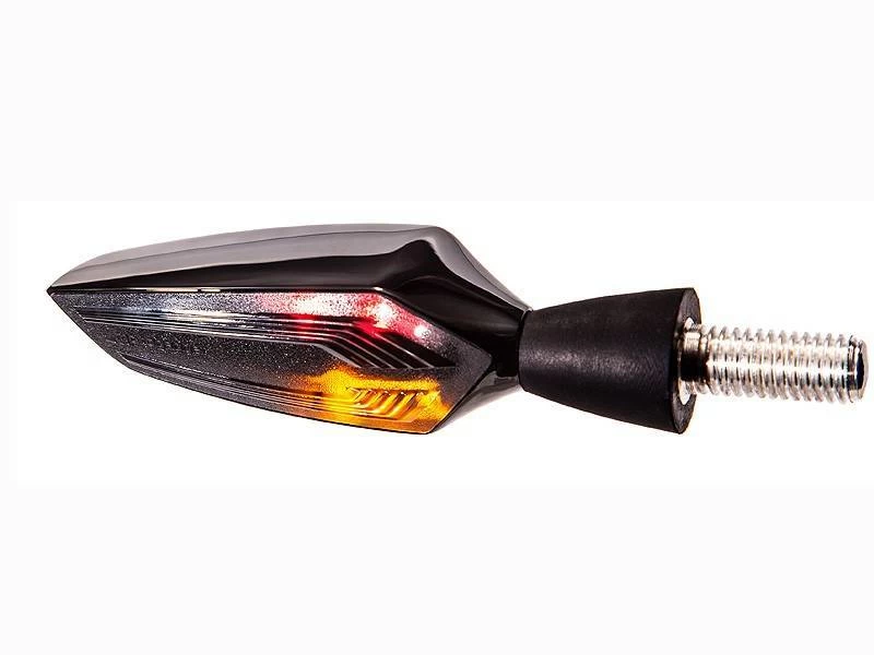 The M-Blaze Edge of Motogadget is a 3in1 attachment link in the Forward-looking design. It can be used as a turn signal, taillight and brake light.