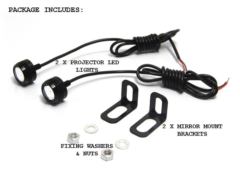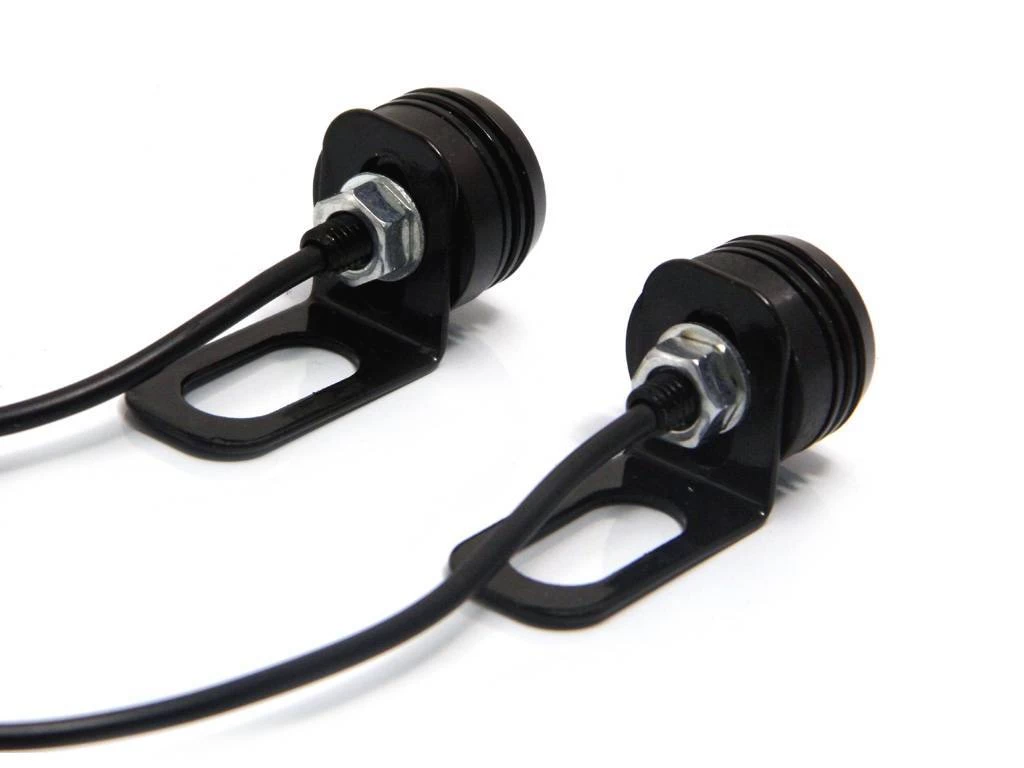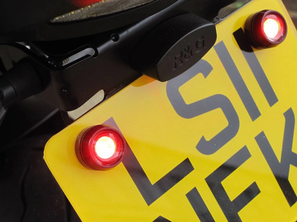 Pair of universal LED Taillight. This high-quality product has a 23 mm diameter and a red LED light. It can be mounted into the number plate and doubled up as bolts or can sit on any flat surface as tail or stop lights.