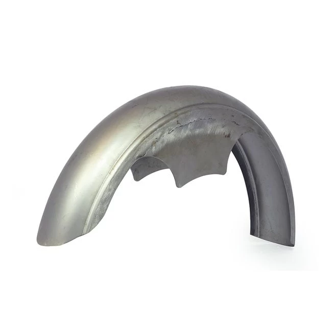 – 132mm wide. – 380mm radius. – 115cm Long. – 1.5mm thick steel. Custom steel front fender by Peter Penz. Note: Length is measured around the radius. Width is measured from inside to inside and mentioned for reference only.