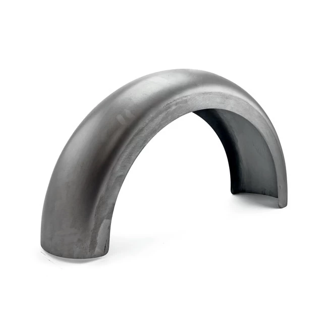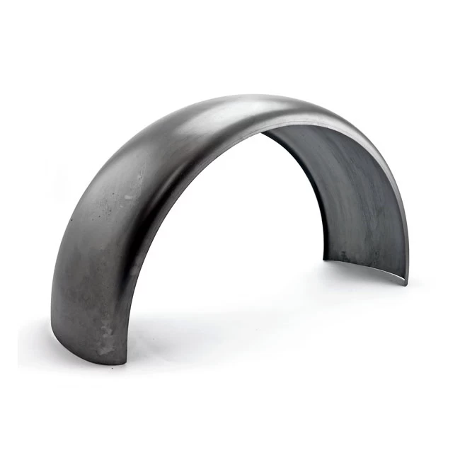– 316mm wide. – 345mm radius. – 104cm long. – 1.5mm thick steel. Round top styled. Designed for bikes without suspension (rigid frames), where the fender can be mounted closer to the tire. A special, smaller, radius is used to let the fender ‘hug’ the tire better, to get that cool low-down custom look that only a rigid frame can provide. Note: Length is measured around the radius. Width is measured from inside to inside and mentioned for reference only. Note: Designed for 220/50/20 series tires.