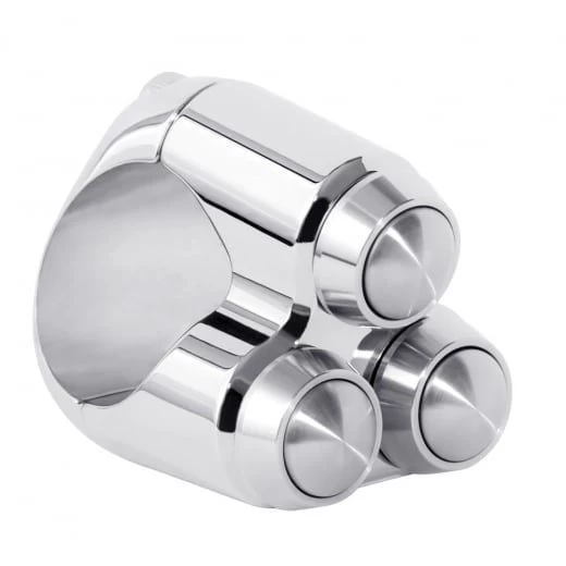 The rebel.switch combines sleek and minimalist design with great functionality. Perfect if you are building a café racer, scrambler or any other bike and want a cool clean look. Choose between the black anodised or polished finish and combine it with push buttons of the same colour and finish. Alternatively, you can mix it up by choosing e.g. the polished housing and black push buttons.