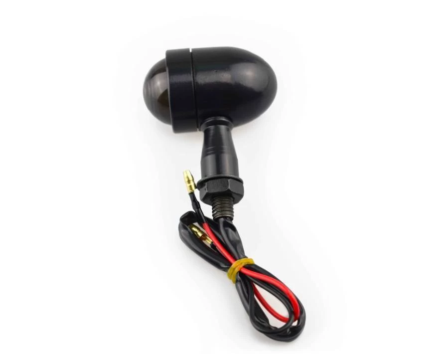Set Bullet Mini Black & Smoke Bullet Turn Signals. The housing is made out of metal and you immediately feel that you are dealing with quality. These little friends are bringing your Chopper to a whole new level.