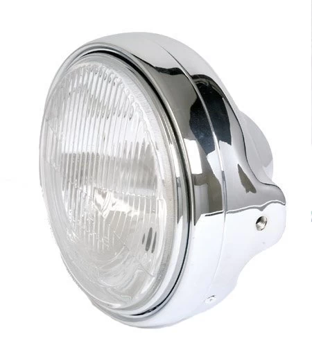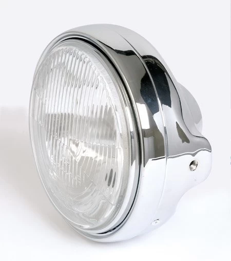 Tough 7 inch Chrome Headlight Type 1. Looks great on practically every Chopper and is therefore often used.