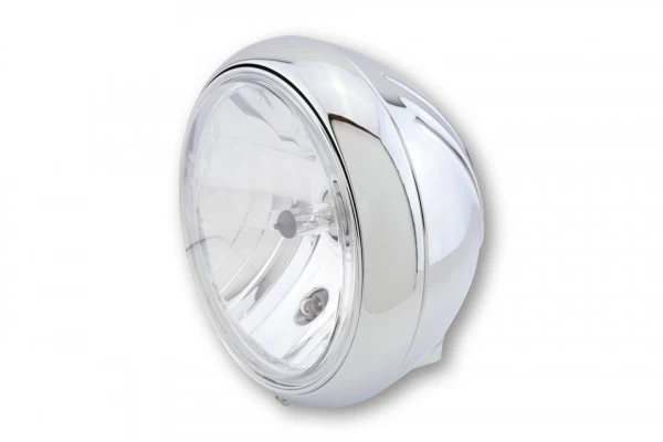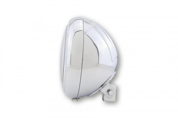 7″ Yuma 1 Headlight Bottom Mount- Chrome. This high quality and E-marked headlight, has a very nice finish and a metal housing. The hemispherical spotlight is also robust and easy to install.