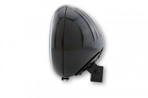 7″ Yuma 1 Headlight Bottom Mount – Gloss Black . This high quality and E-marked headlight, has a very nice finish and a metal housing. The hemispherical spotlight is also robust and easy to install.