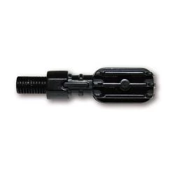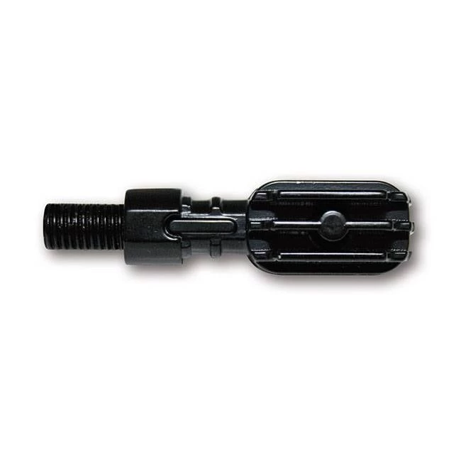 Newest light technology in a black metal housing, with a sturdy metal stem and clear lens, E-marked.