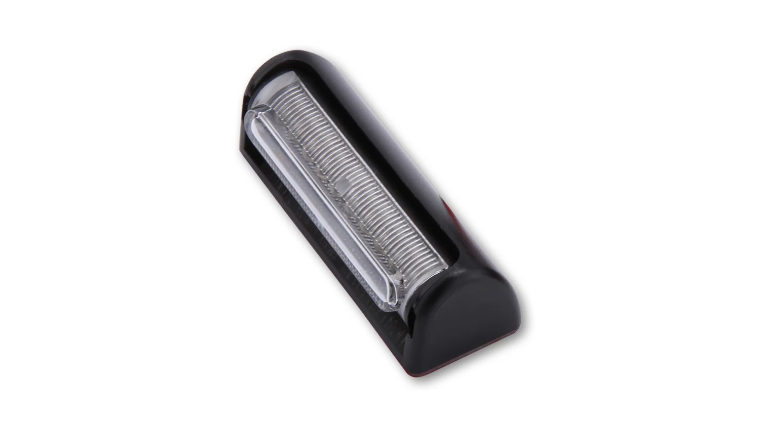 The LED taillight with black housing and clear glass is attached by self-adhesive film. The beam angle can be adjusted several times by means of a grub screw on the side, E-tested.