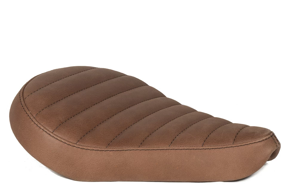 And it doesn’t stop here; some of the best materials were selected to cover the seat pan. 4cm of high-density foam, covered in plastic to keep it dry, makes sure your bodyweight distributes well into the foam and have you enjoying the curves longer instead of looking for that next petrol station. Covered in high quality full grain leather and stitched together using heavy-duty thread, of course the quilted pattern is straight, symmetrical and evenly spaced on the seat so it looks the part too. And to make sure it stays like that the cover is glued and riveted firmly to the bottom of the seat.
