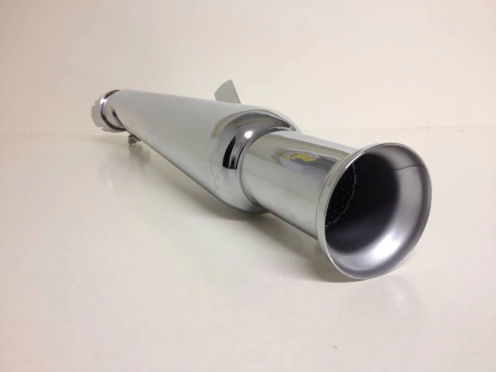 Universal Chrome 20″ Tulip End Megaphone Upswept Left Hand silencer.