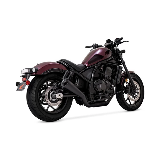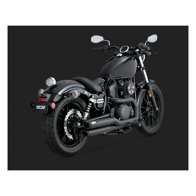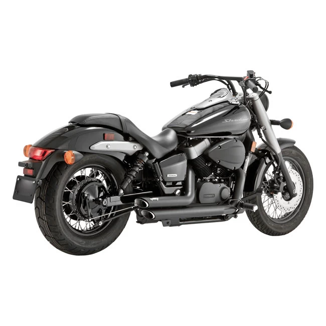 Designed specifically for the middleweight metric cruiser segment, the Twin Slash Staggered combines a host of features in a great looking exhaust system. The Twin Slash Staggered comes encased with full-length heat shields over the head pipes and mufflers to conceal heat discoloration. Sporting the signature Vance & Hines twin slash end treatment, the versatile oversized mufflers of Twin Slash Staggered can be refitted with two different optional baffle cores. Mounting hardware and easy-to-understand instructions are included. Quiet baffle: 981791.